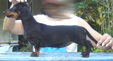 (Duchwood's Solo Sam MS x Duchwood's Miss Daisy MS) Although this was an "oops" litter, Ariel has turned out rather lovely and we will show her when she is more mature. Her only fault is that her tail set is a little high, but she carries it down at dog shows. She may be available to a show home on co-ownership. |
